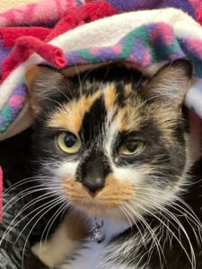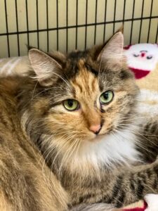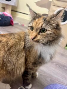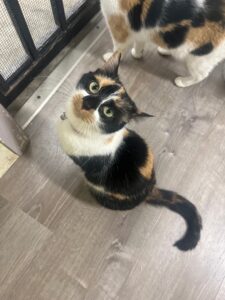 Tiana loves to lay near you while napping. Her favorite hobby is bird watching out the window in the cat room.