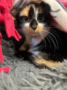 Ariel will sit on your lap all day, everyday. She loves people and just wants to be around them. She is spunky and will meow at her sisters if they are taking her spot on your lap 🤣